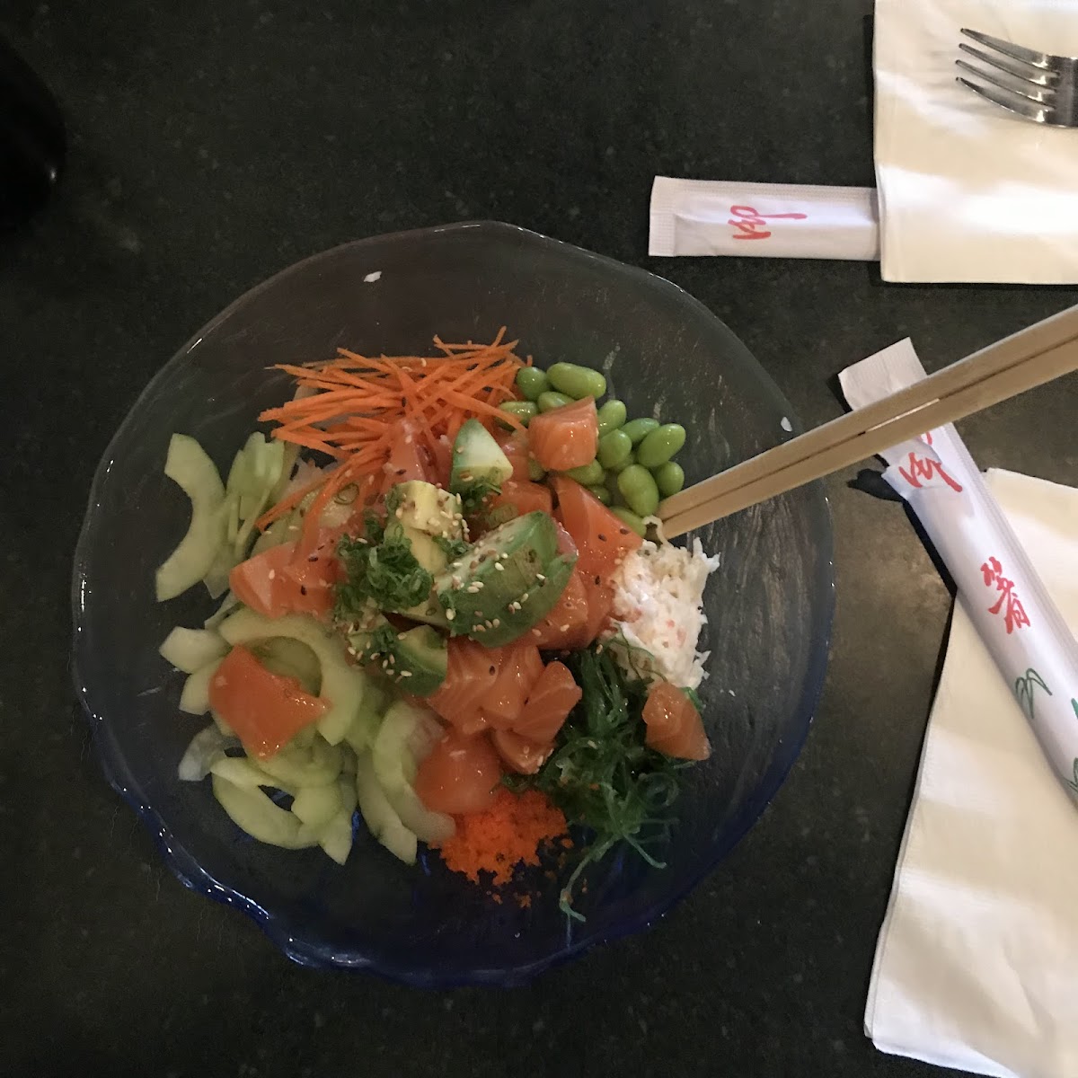 Genuinely some of the best pokebowl and sushi ive tried in vancouver! Definitely plan on coming back soon :) the portions are great, the rice was moist enough and stuck together so well! Ordered a pokebowl and two sushi plates and have 0 complaints. The server was attentive, the restaurant has a good noise level, and while the restaurant is a little small, its set up in a way that doesnt feel cramped :3